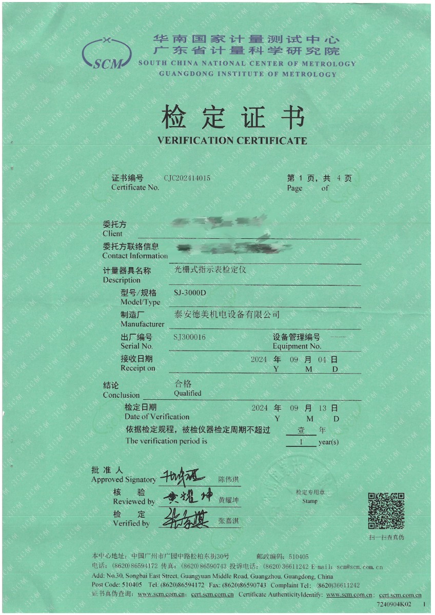 光柵式指示表檢定儀檢定證書 2024-9-20 本文被閱讀 7053 次