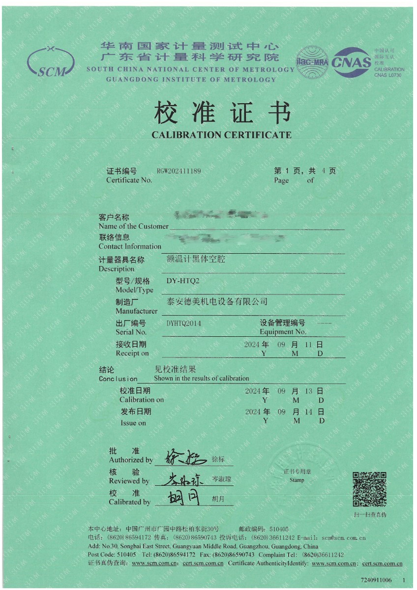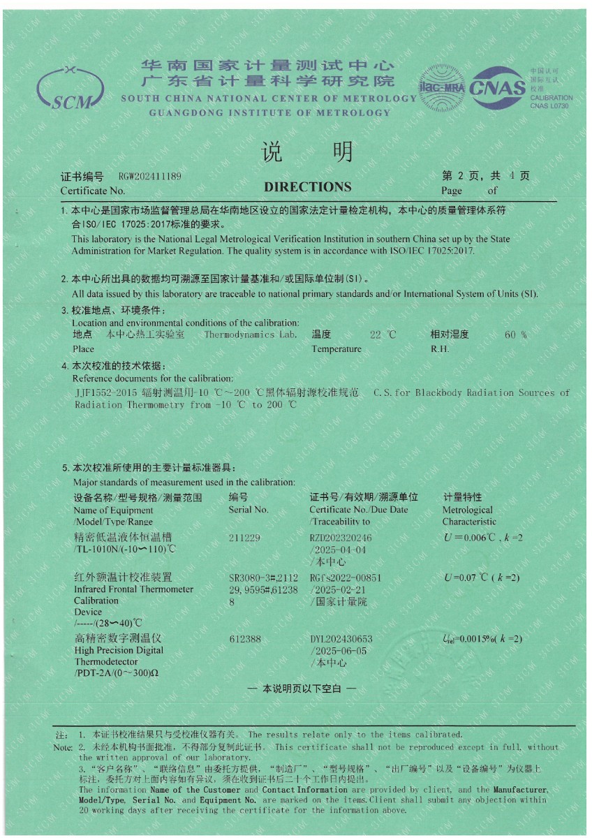 | 上一條:體溫計(jì)專用黑體恒溫槽(-20~100℃)校準(zhǔn)證書 | 下一條:中溫面源黑體爐-校準(zhǔn)證書 |