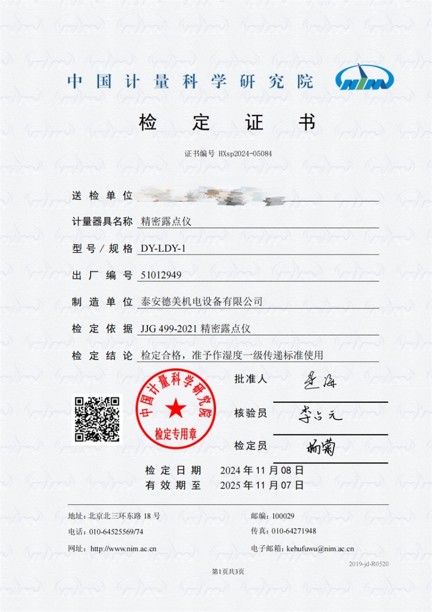 冷鏡式露點儀檢定證書 2024-11-21 本文被閱讀 7515 次