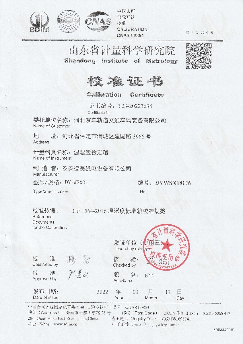 河北京車軌道交通車輛裝備有限公司-溫濕度檢定箱 2022-3-18 本文被閱讀 14691 次