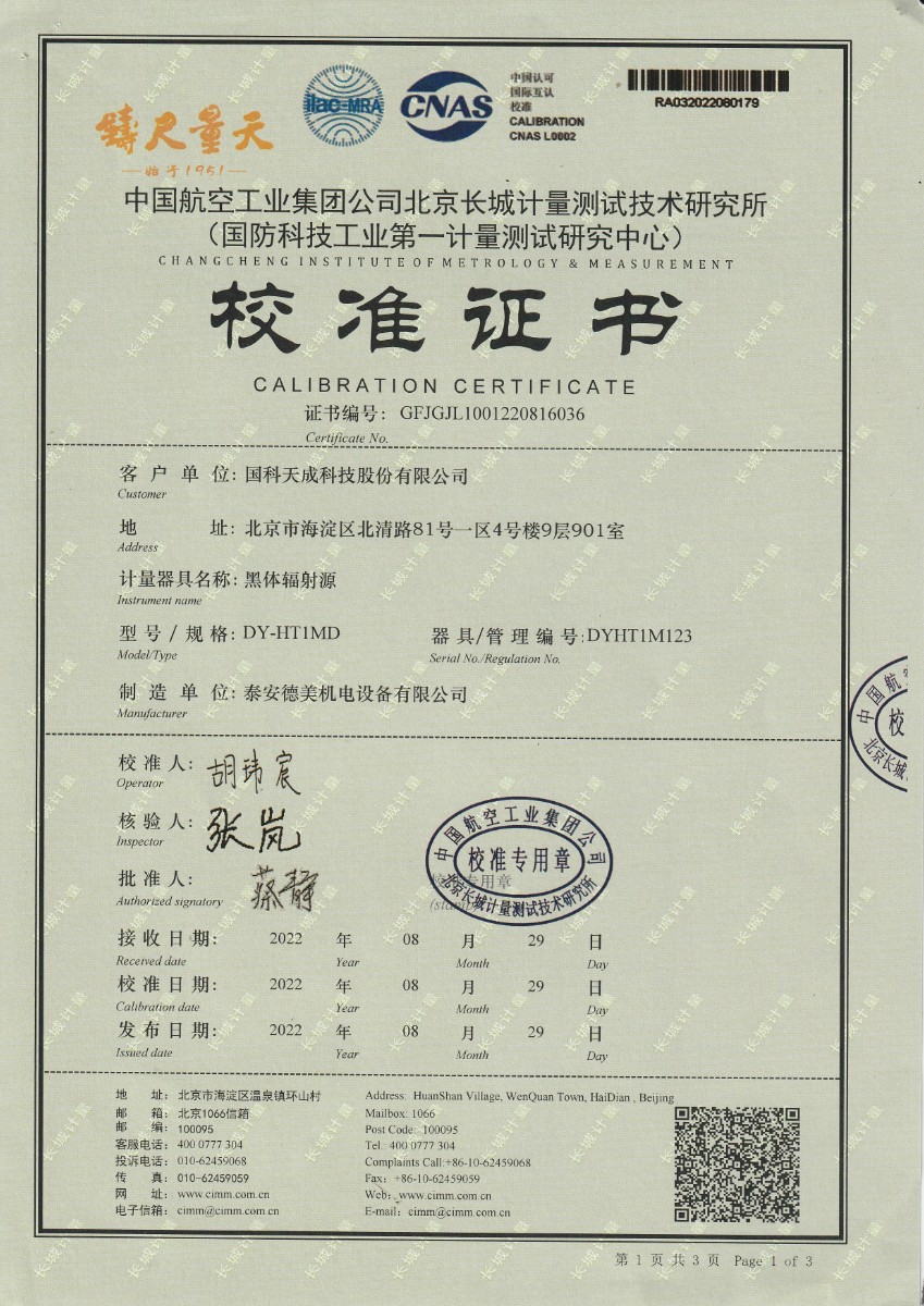 國科天成科技股份有限公司-黑體輻射源 2022-9-5 本文被閱讀 15832 次
