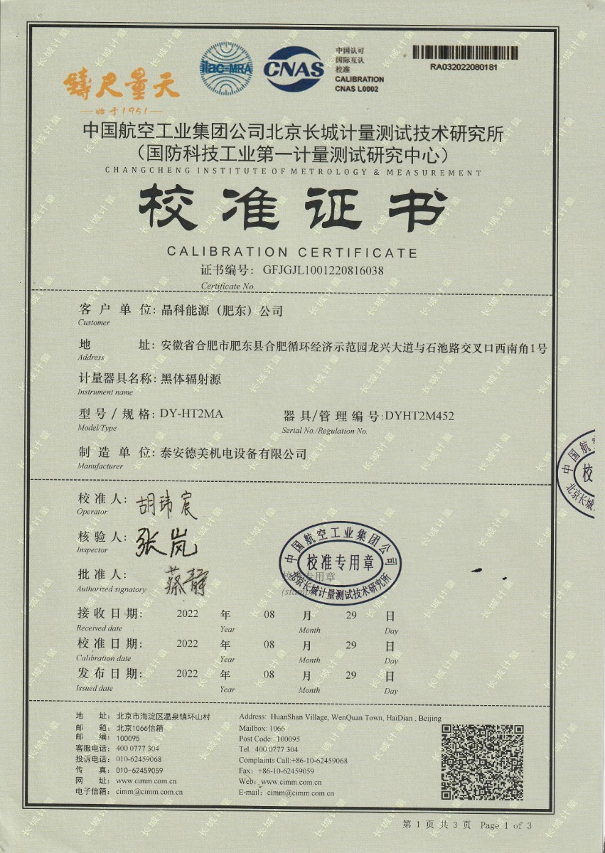 晶科能源(肥東)公司-黑體輻射源 2022-9-5 本文被閱讀 13663 次