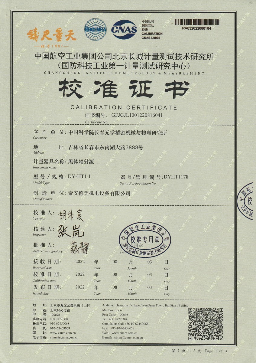 中國科學(xué)院長春光學(xué)精密機械與物理研究所-黑體爐DY-HT1-1 2022-9-5 本文被閱讀 12252 次
