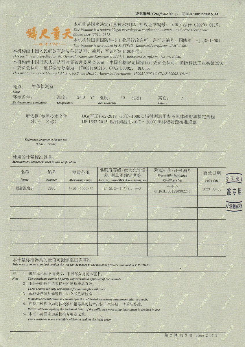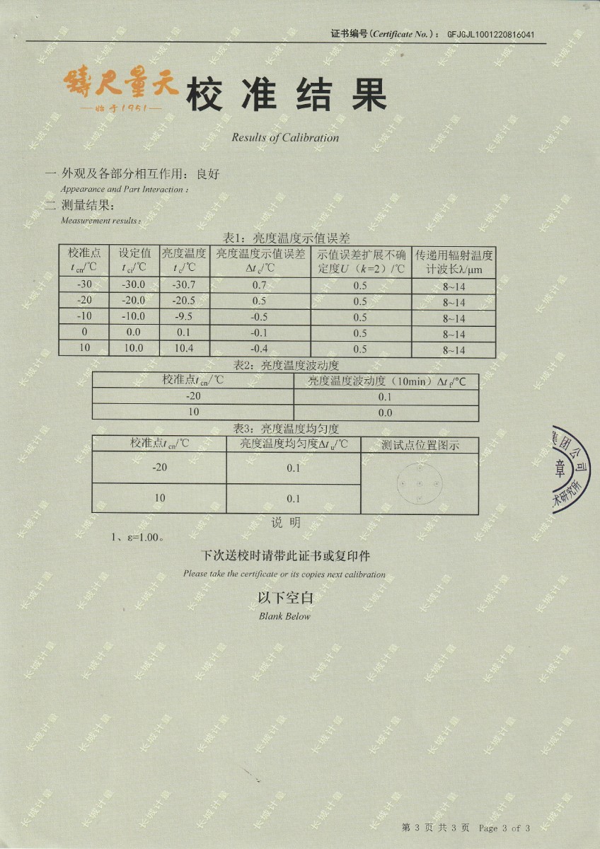 上一條:晶科能源(金昌)公司-黑體輻射源下一條:中溫面源黑體爐-校準證書