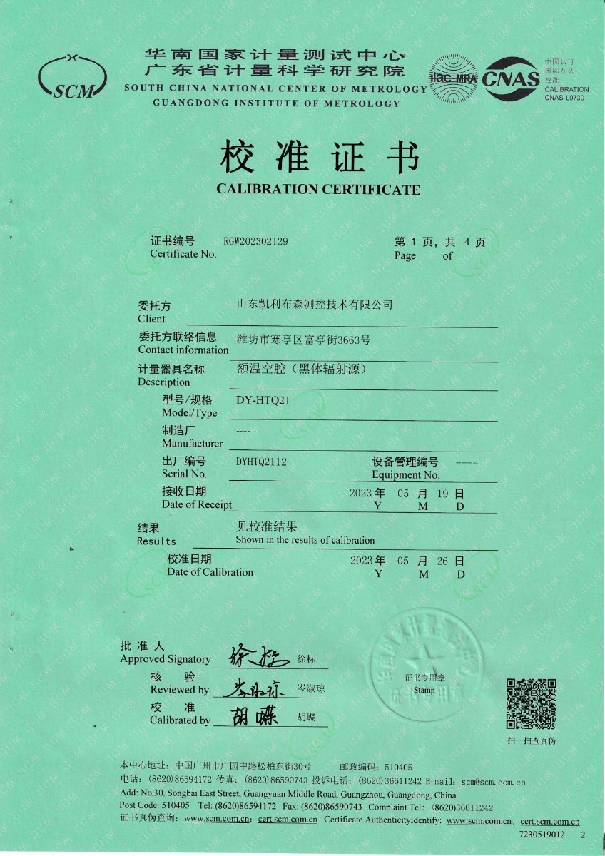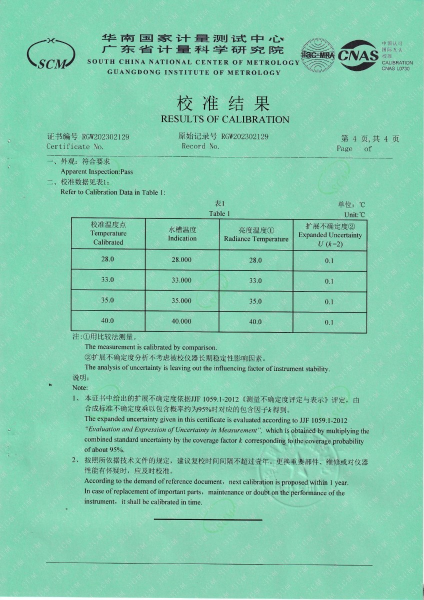| 上一條:魯南中聯(lián)水泥有限公司 便攜式恒溫油槽 校準(zhǔn)證書 | 下一條:中溫面源黑體爐-校準(zhǔn)證書 |