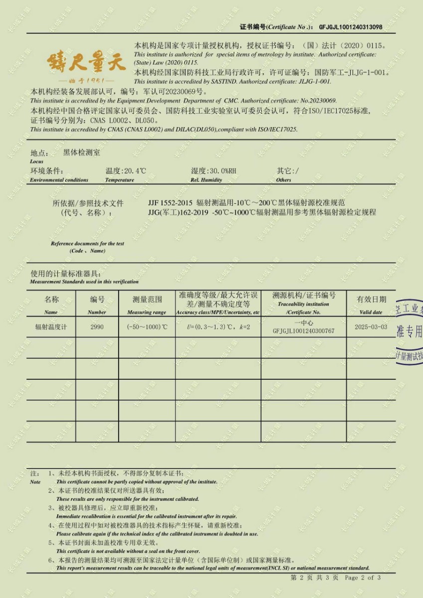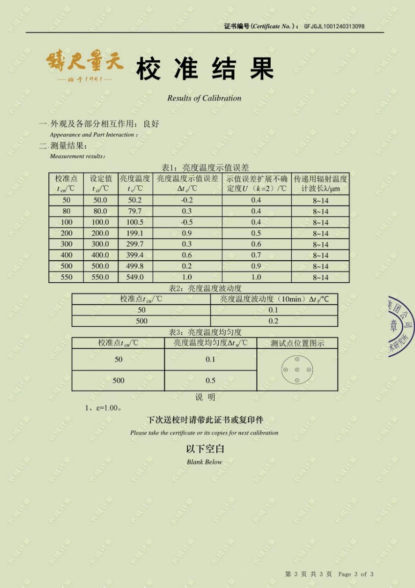 黑體輻射源校準(zhǔn)證書 2024-4-11 本文被閱讀 6933 次