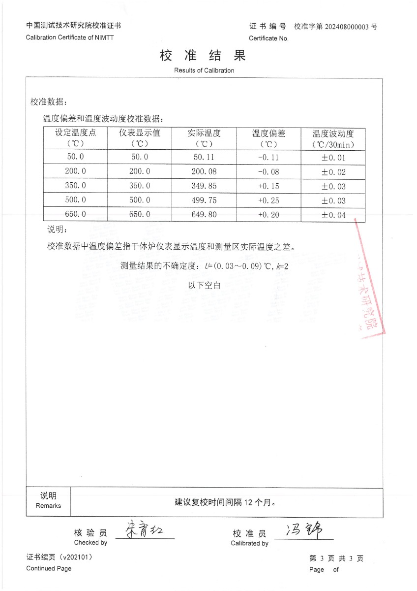 干體爐300(室溫+5℃~650℃)校準證書 2024-8-5 本文被閱讀 7277 次