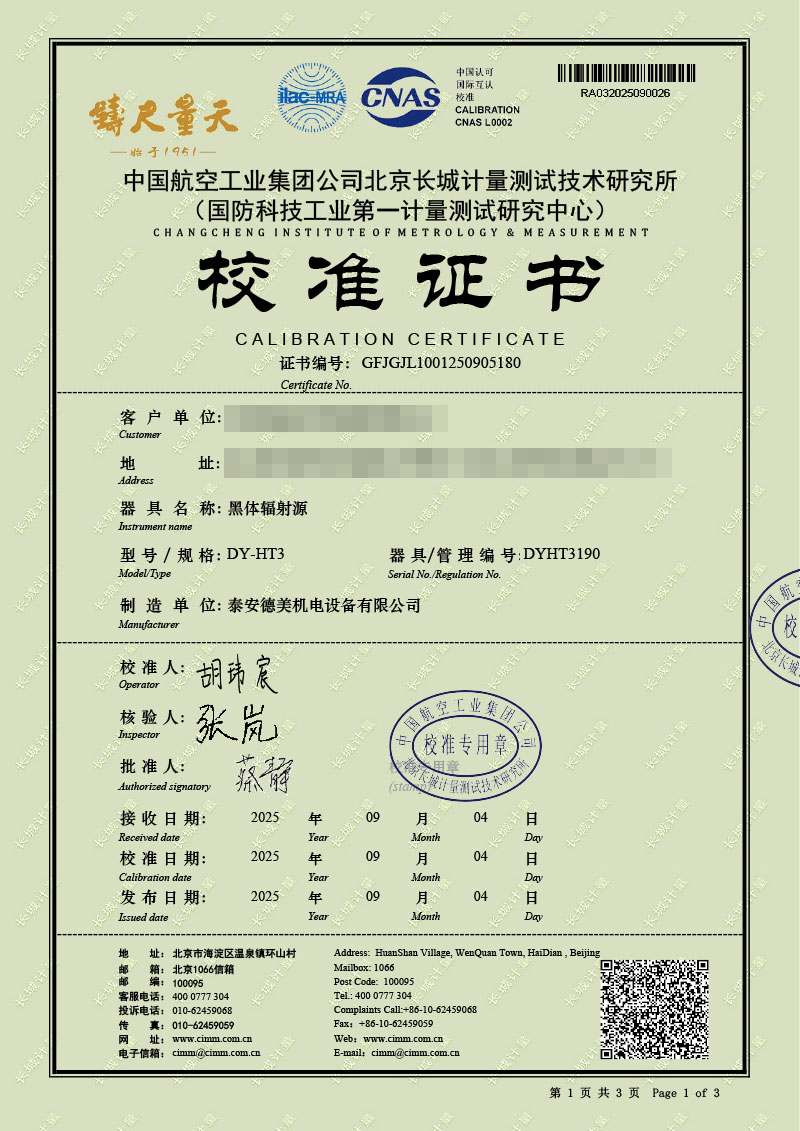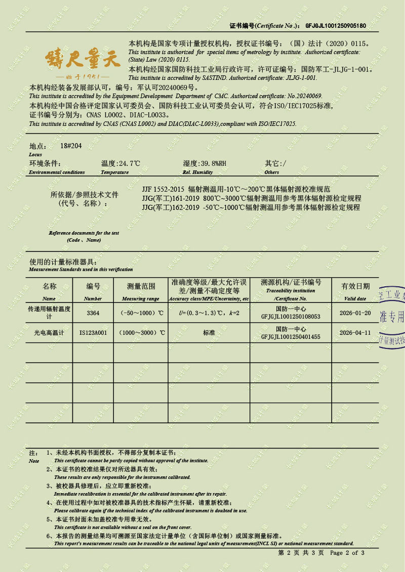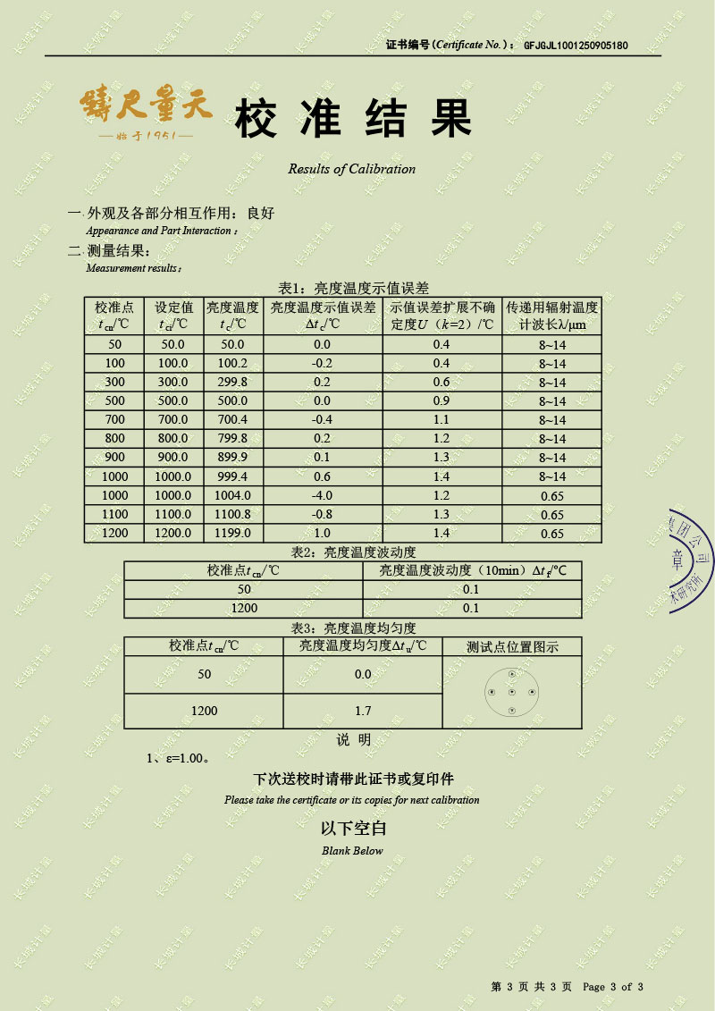 黑體輻射源(50-1200℃)校準證書 2025-9-22 本文被閱讀 2121 次