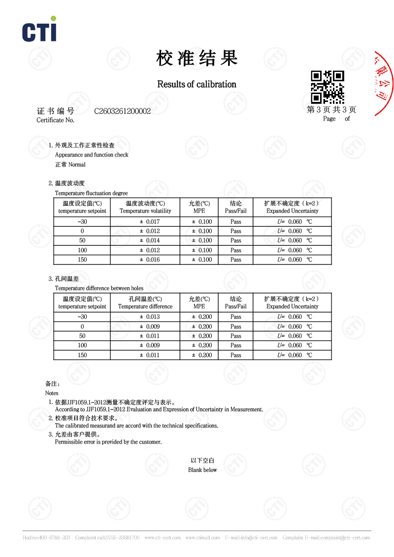 低溫智能干體爐(電測款)校準(zhǔn)證書 2026-4-7 本文被閱讀 253 次