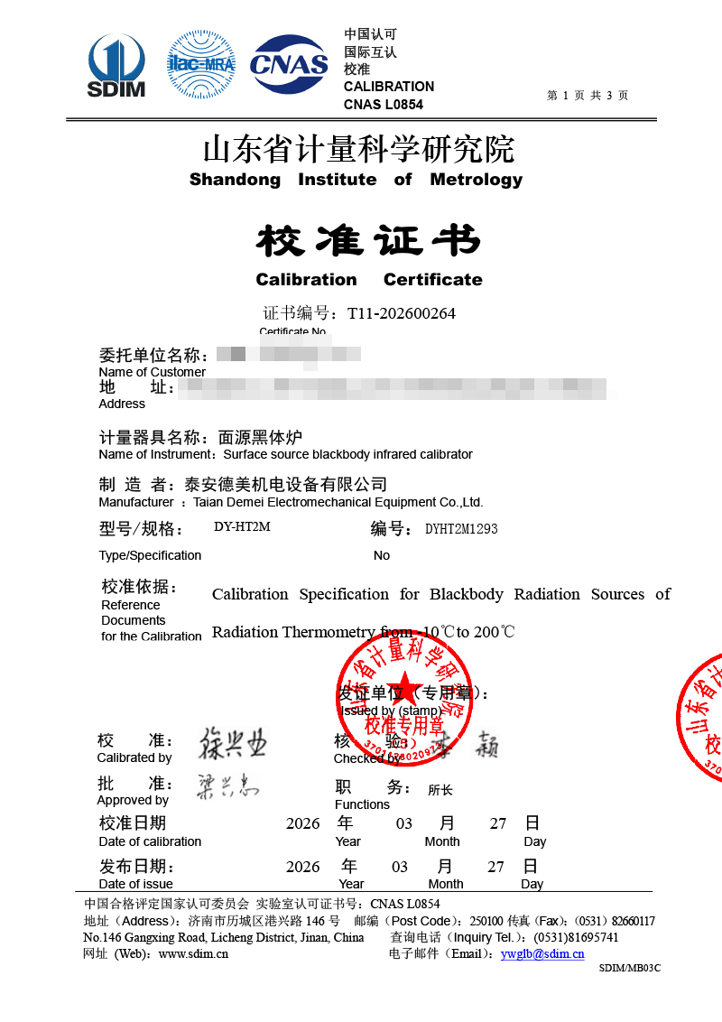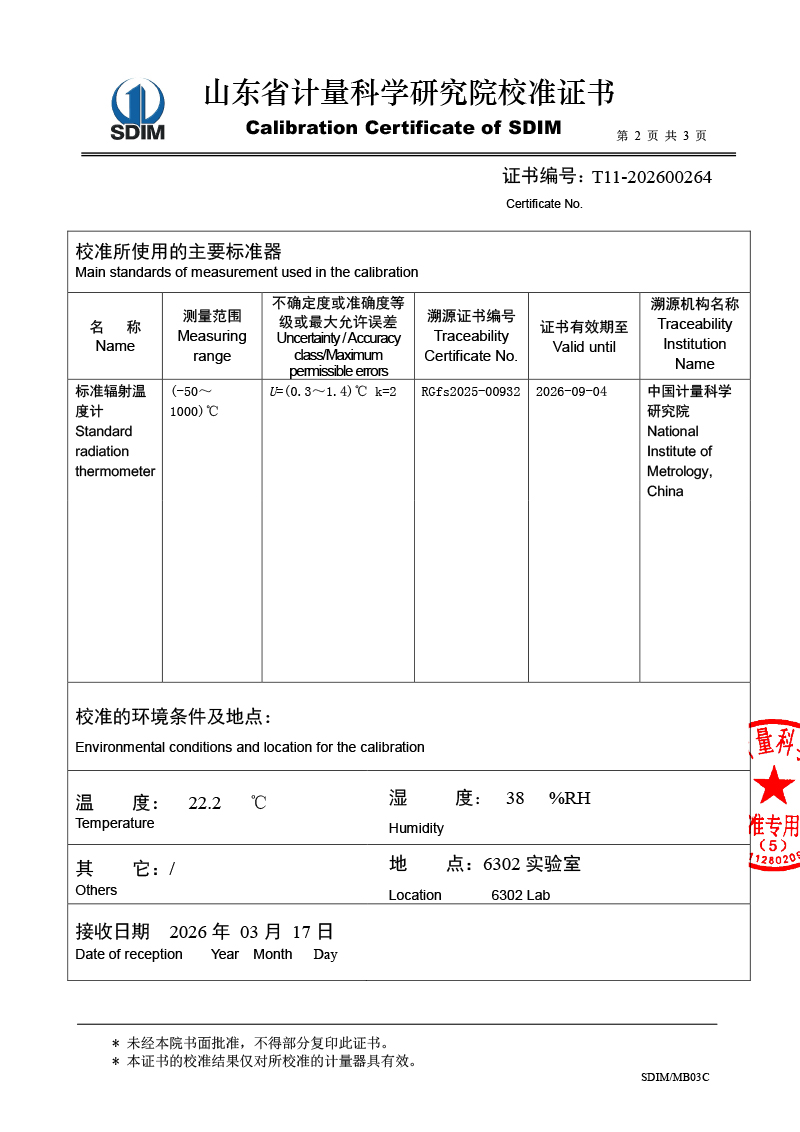 面源黑體爐-校準(zhǔn)證書 2026-4-7 本文被閱讀 701 次
