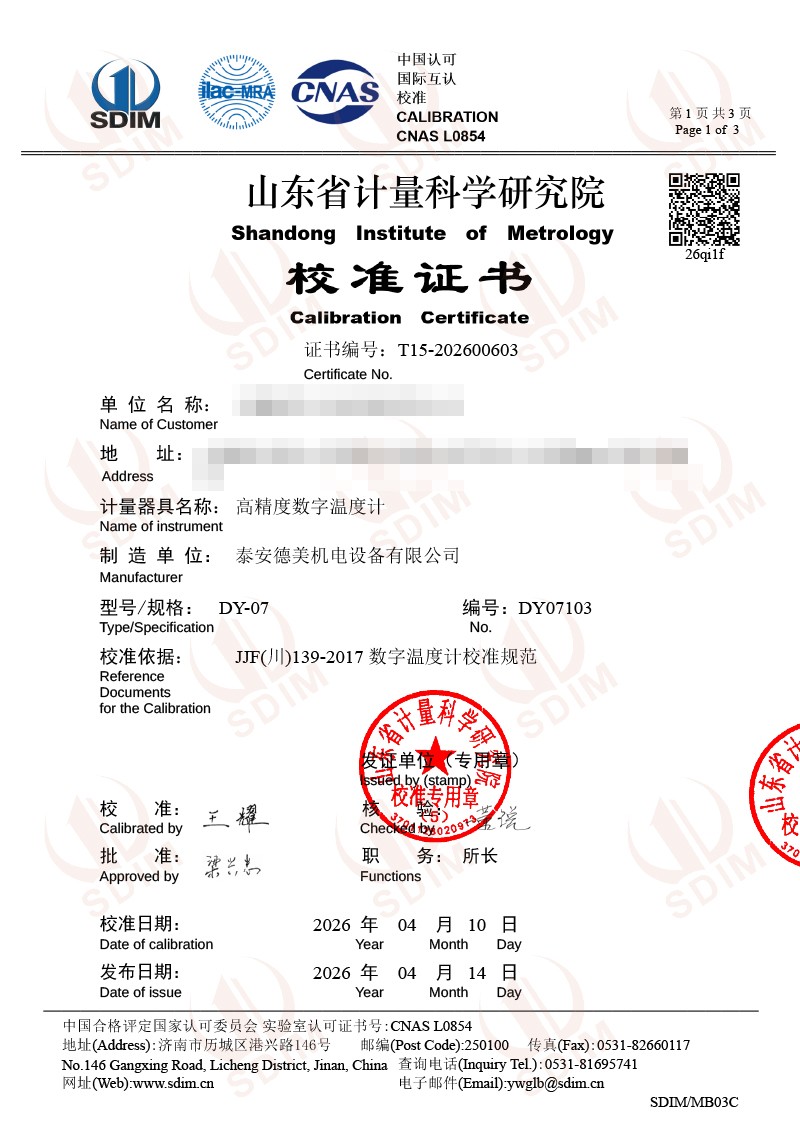高精度數(shù)字溫度計(jì)-校準(zhǔn)證書 2026-4-14 本文被閱讀 231 次