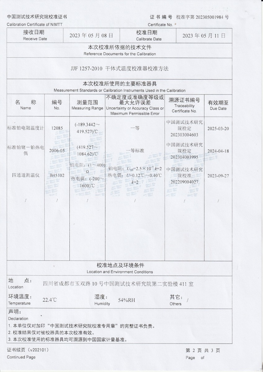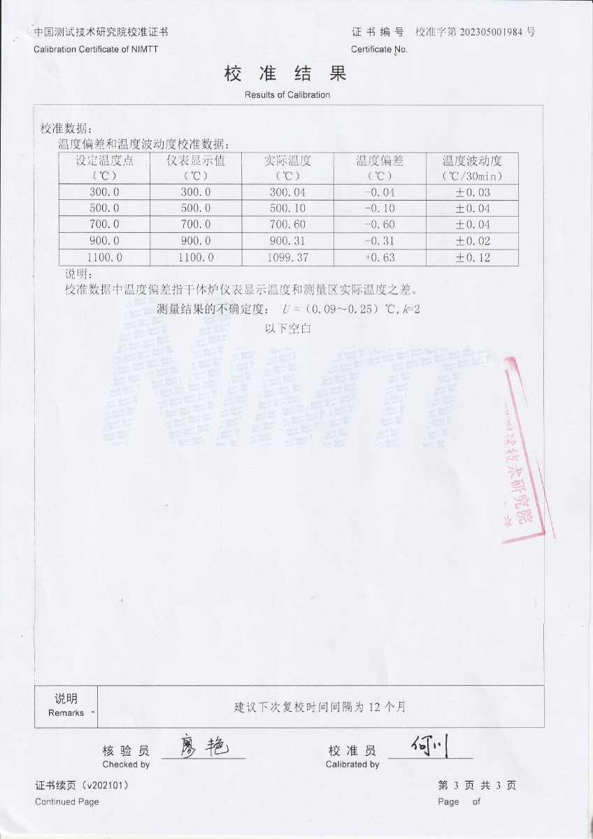 | 上一條:魯南中聯(lián)水泥有限公司 溫度校驗儀 校準證書 | 下一條:中溫面源黑體爐-校準證書 |