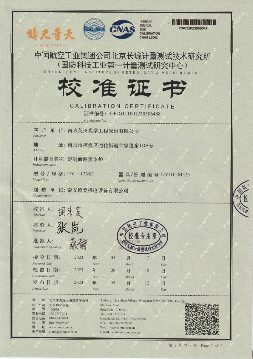 | 上一條:魯南中聯(lián)水泥有限公司 干體式溫度校準(zhǔn)器 校準(zhǔn)證書 | 下一條:DY-HT2M-C高溫面源黑體爐(100mm) |