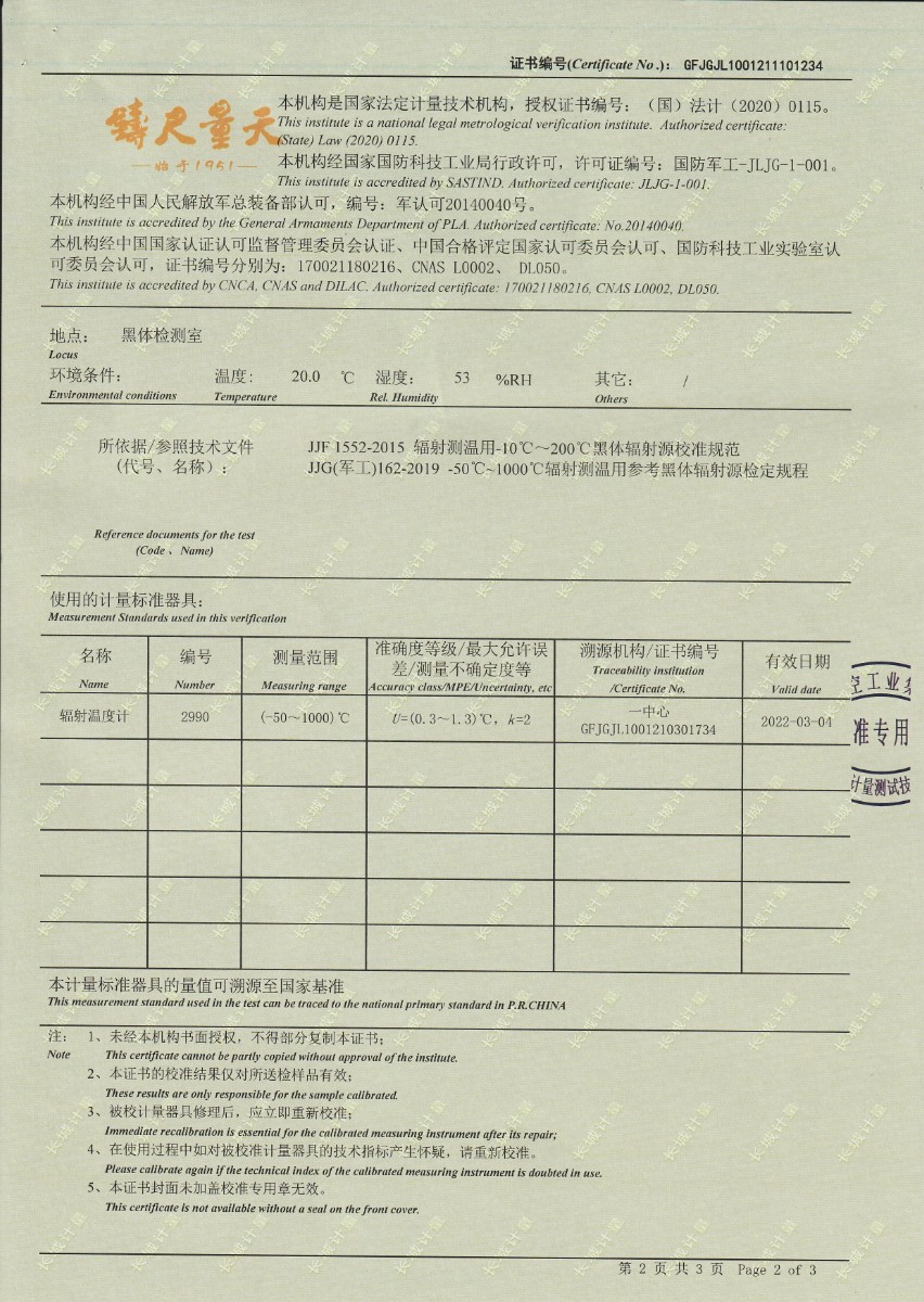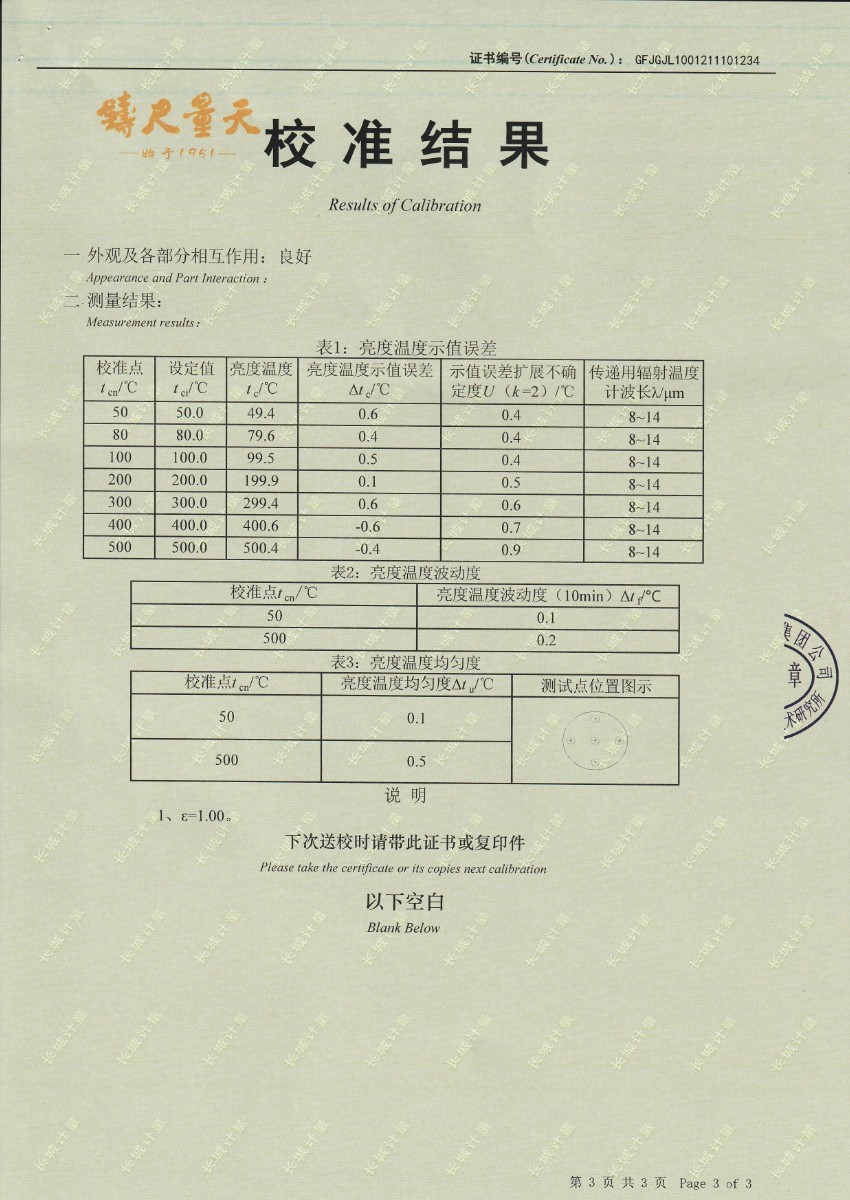 | 上一條:東營市安全工器具質(zhì)量檢測有限公司-黑體輻射源(-15-80℃) | 下一條:中溫面源黑體爐-校準證書 |