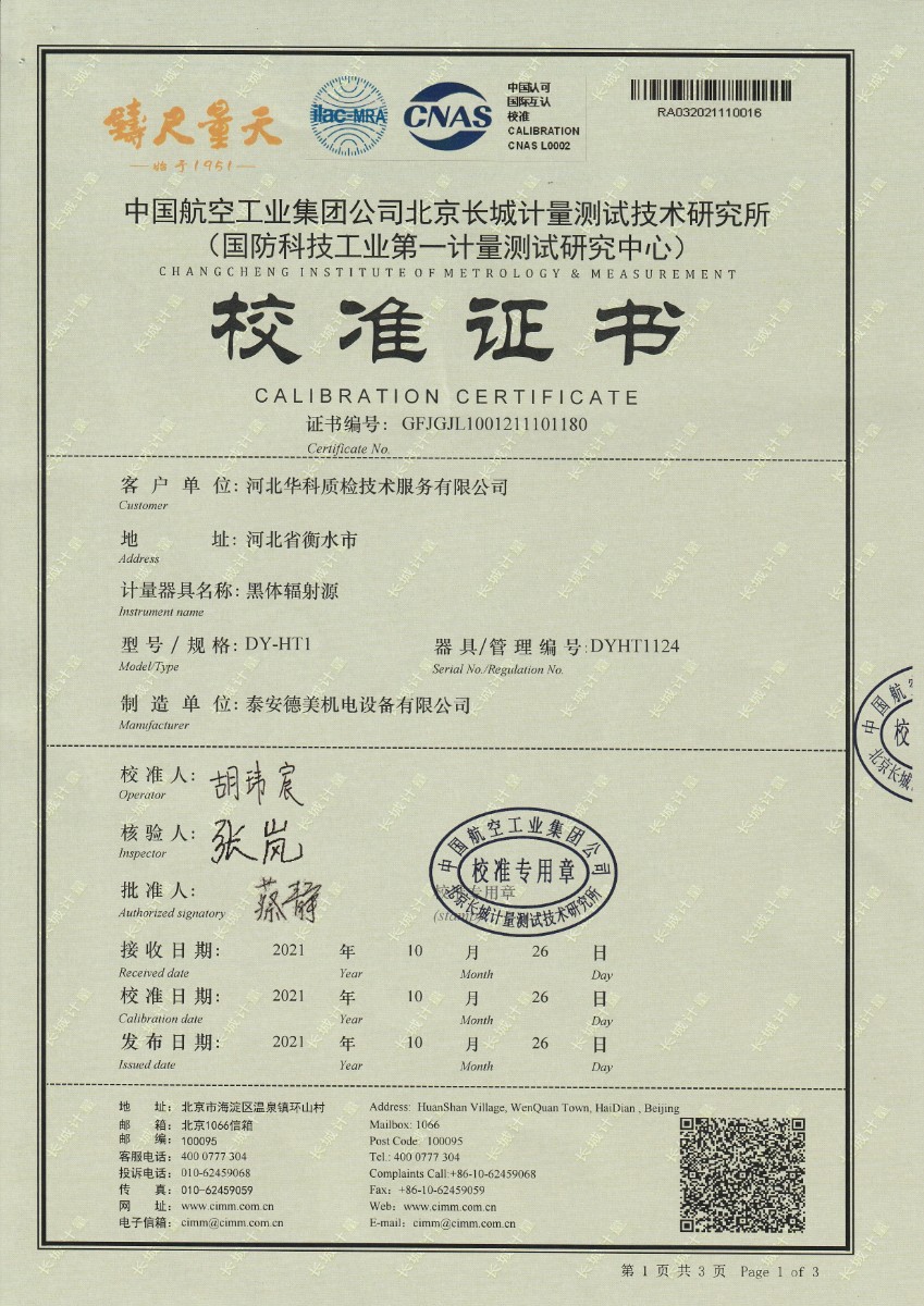 河北華科質檢技術服務有限公司-黑體輻射源(DY-HT1) 2021-11-9 本文被閱讀 16695 次