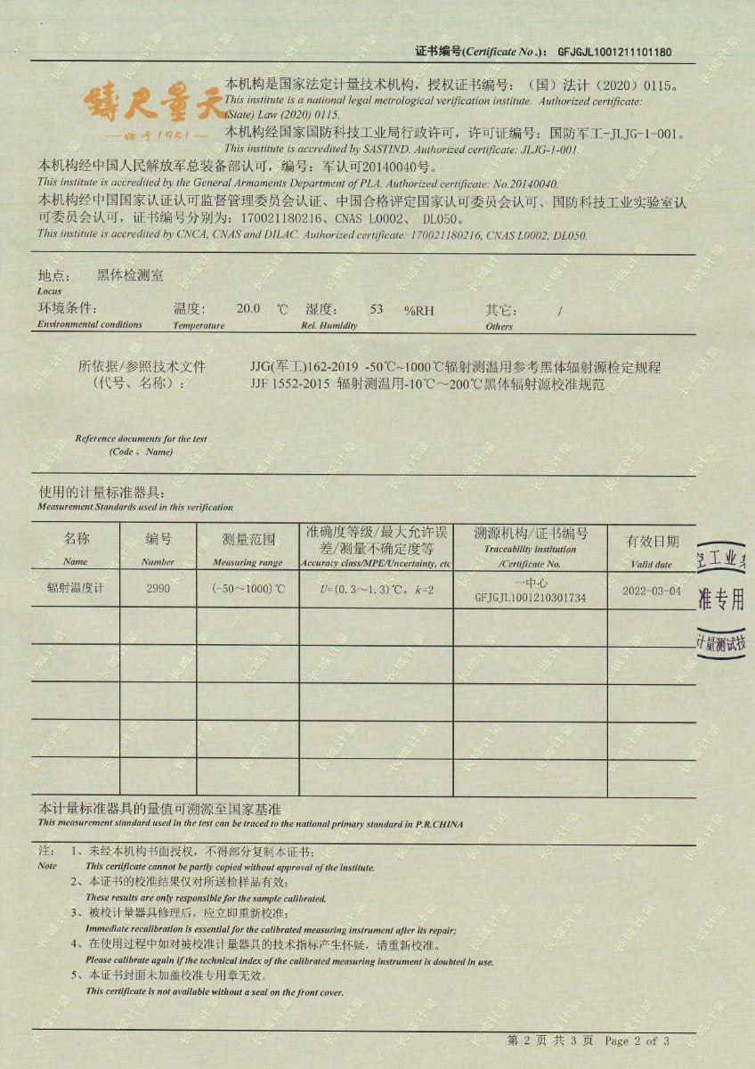 上一條:東營市安全工器具質量檢測有限公司-黑體輻射源(50-500℃)下一條:中溫面源黑體爐-校準證書