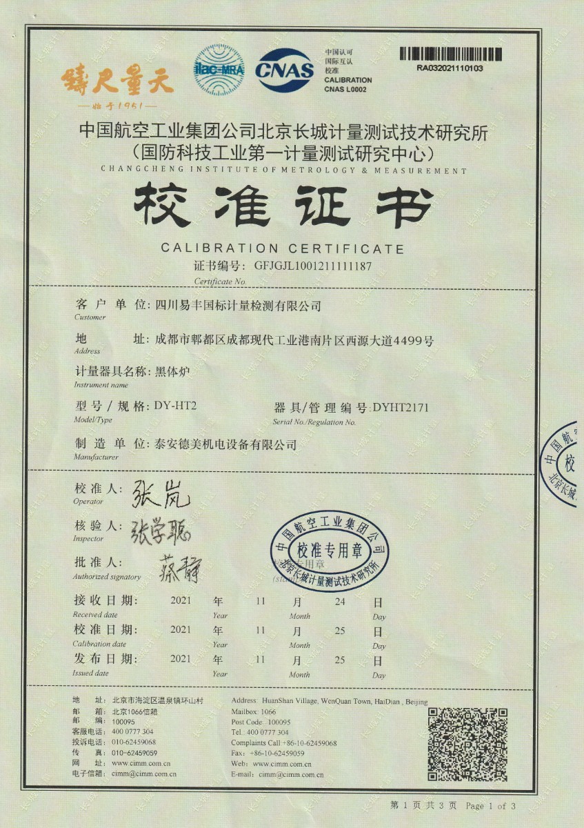 四川易豐國際計量檢測有限公司-黑體爐 2021-12-3 本文被閱讀 15342 次