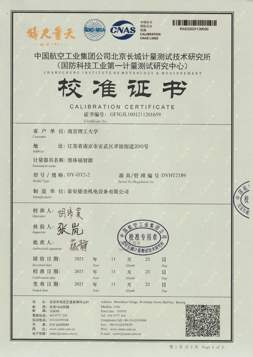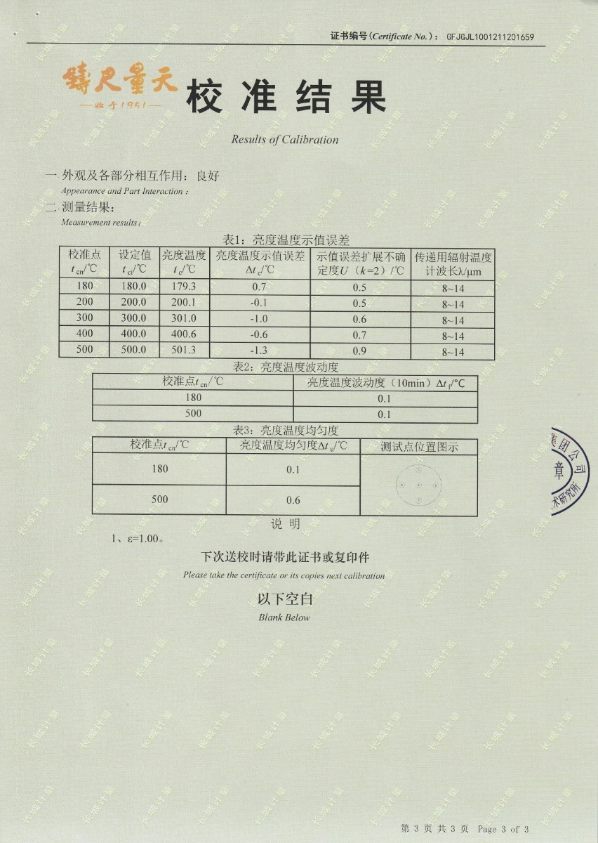 | 上一條:南京理工大學(xué)-黑體輻射源校準(zhǔn)證書(shū)40-250℃ | 下一條:中溫面源黑體爐-校準(zhǔn)證書(shū) |