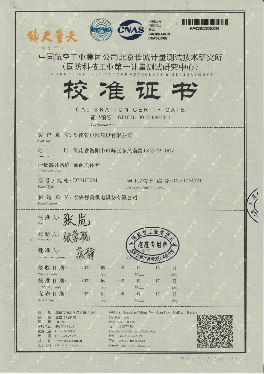 湖南省電網建設有限公司-面源黑體爐 2023-9-4 本文被閱讀 11182 次