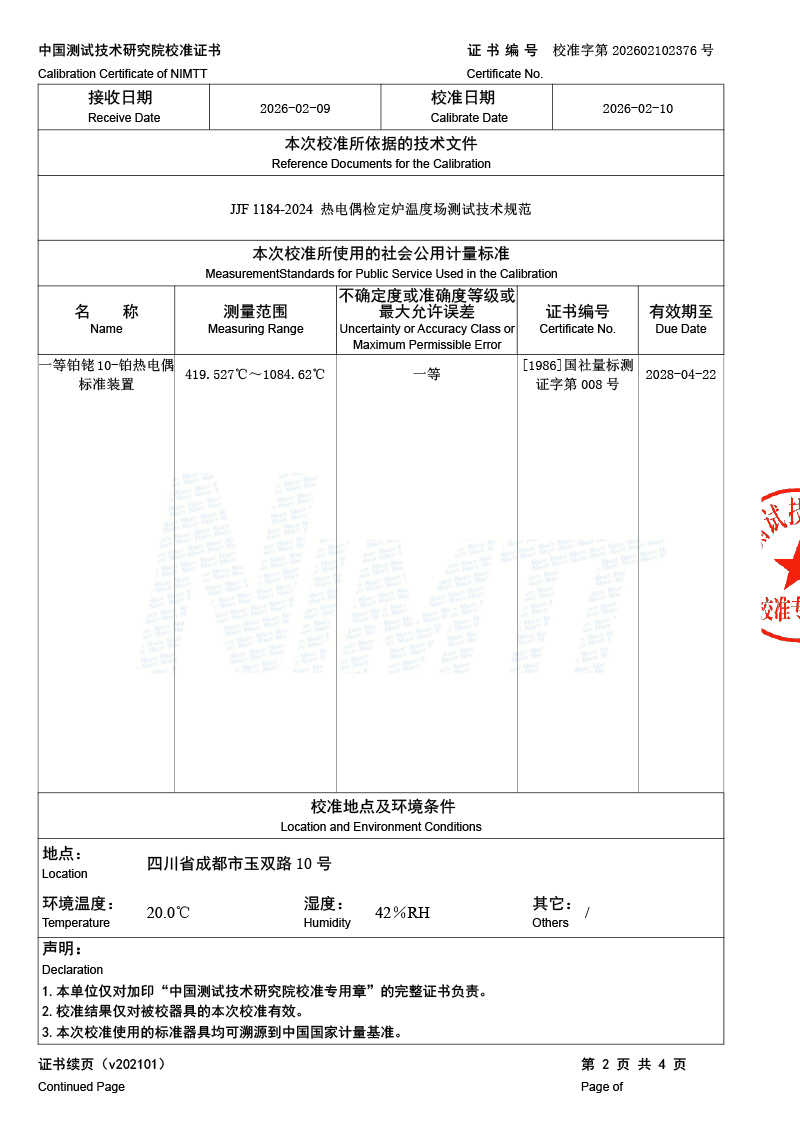 三區(qū)廉金屬熱電偶檢定爐-校準證書 2026-2-11 本文被閱讀 65 次
