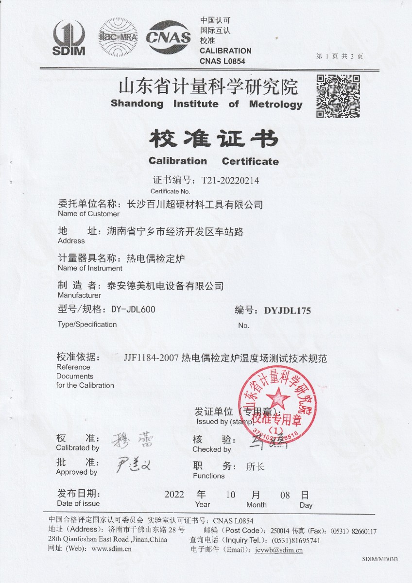 長沙百川超硬材料工具有限公司-熱電偶檢定爐 2022-11-9 本文被閱讀 13819 次