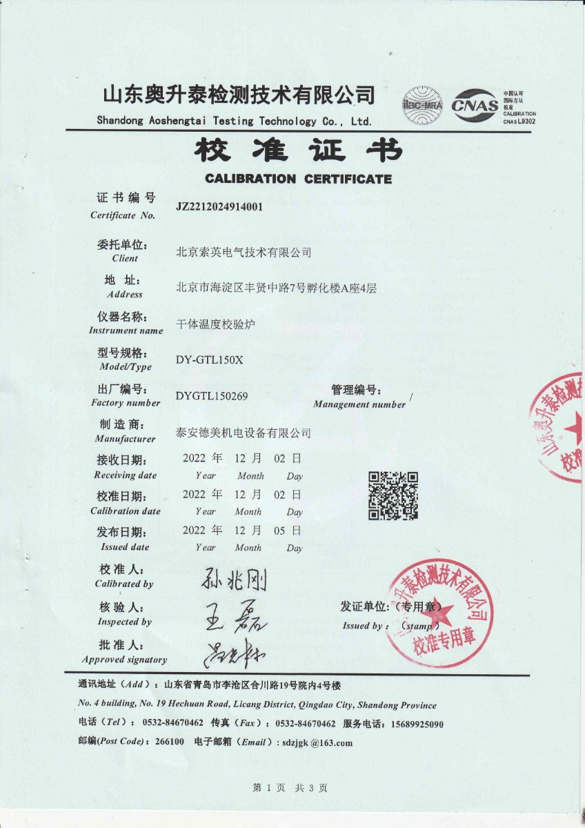 | 上一條:北京索英電氣技術(shù)有限公司 干體溫度校驗爐 | 下一條:中溫面源黑體爐-校準(zhǔn)證書 |